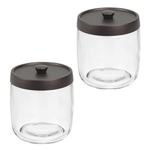 MDesign Set da 2 porta cotone in vetro - Organizer con coperchio per dischetti di cotone, cotton fioc e batuffoli - Barattolo per cotone dal design semplice - Trasparente/bronzo