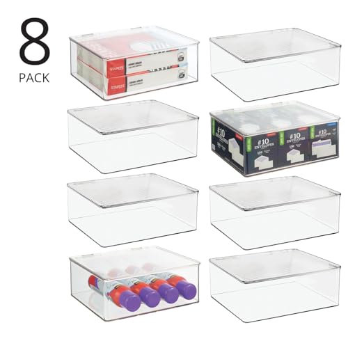 MDesign Box porta giocattoli con coperchio a cerniera - Organizer plastica ideale per giocattoli e altri oggetti - Organizer portaoggetti per cameretta, bagno, cucina ecc. - Set da 8 - trasparente