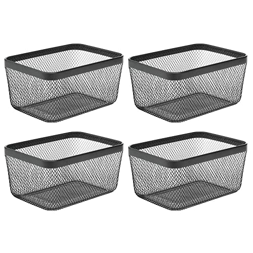 MDesign Set da 4 porta oggetti in filo metallico - Cestino portaoggetti aperto ideale per cucina, bagno, ufficio, lavanderia ecc. - Organizer salvaspazio per la casa - nero