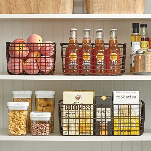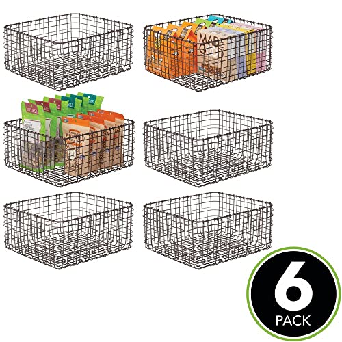 MDesign Set da 6 porta oggetti in filo metallico - Cestino portaoggetti aperto ideale per cucina, bagno, studio, lavanderia, dispensa - Funzionale organizer multiuso per la casa - bronzo