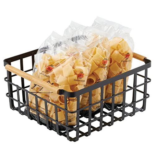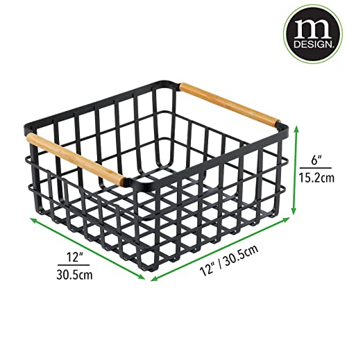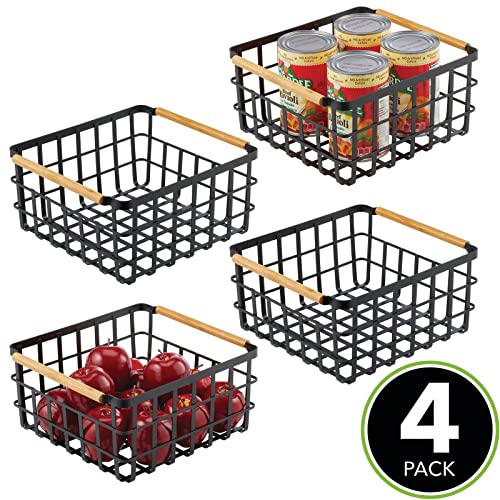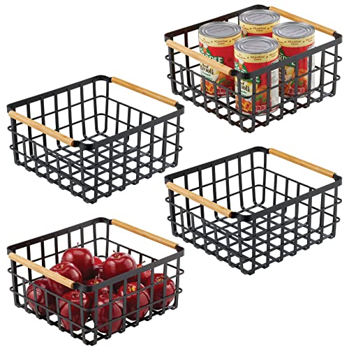 MDesign Porta oggetti in metallo - Cestino portaoggetti aperto ideale per cucina, bagno, studio, lavanderia, dispensa - Funzionale organizer multiuso con maniglie in bambù - set da 4 - nero opaco