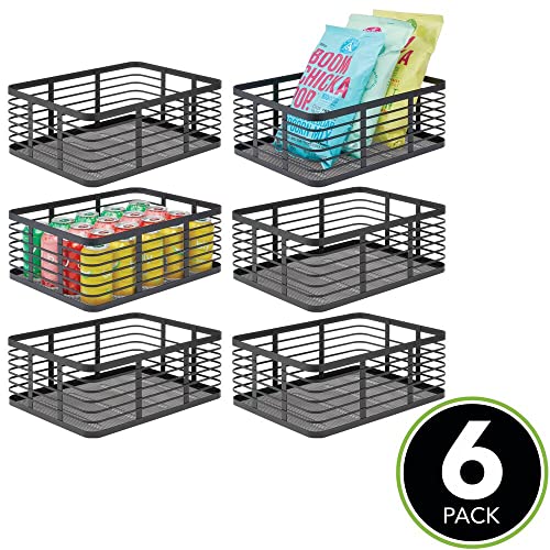 MDesign Set da 6 Porta Oggetti in Metallo - Cestino portaoggetti Aperto Perfetto per Cucina, Bagno, Ufficio, dispensa - Pratico Organizer Multiuso per la casa - Nero
