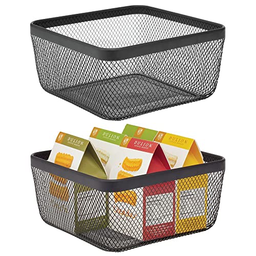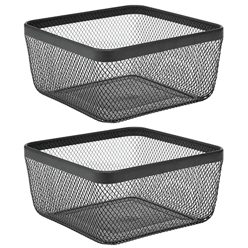 MDesign Set da 2 porta oggetti quadrato in filo metallico - Cestino portaoggetti aperto ideale per cucina, bagno, ufficio, lavanderia, dispensa - Pratico organizer multiuso per la casa - nero