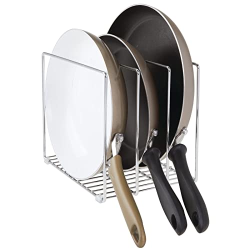 MDesign Porta padelle e teglie in metallo - Compatto porta coperchi pentole per la credenza della cucina - Portacoperchi salvaspazio per stoviglie - argento