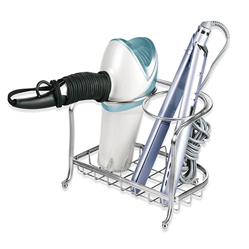 MDesign Porta phon e porta piastra - Organizer in metallo ideale per phon, piastra e spazzole - Porta asciugacapelli in metallo resistente - argento