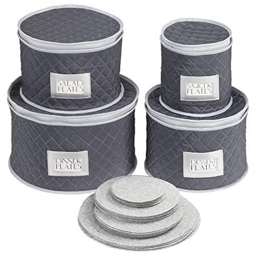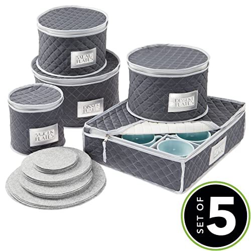 MDesign Set da 5 Porta piatti imbottiti - Organizer per la cucina ideali per custodire e trasportare piatti per 12 persone - Contenitori per piatti con antiurto in feltro - blu navy/grigio