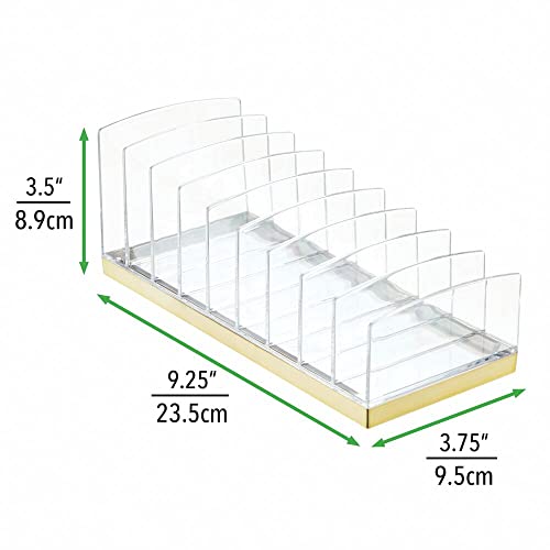 MDesign Porta trucchi in plastica - Organizer per cosmetici con 9 scomparti - Contenitore per make-up per bagno, tavolo da trucco o camera da letto - trasparente e ottone