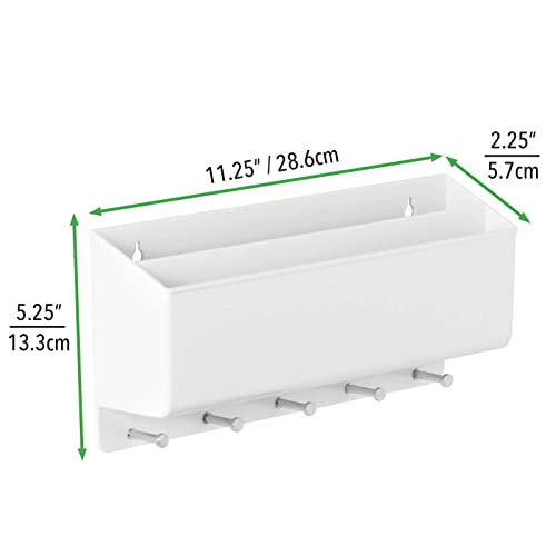 MDesign Portalettere e appendichiavi - Bacheca chiavi con 5 ganci e 2 scomparti portariviste - Il modo più pratico per organizzare chiavi, posta e giornali - bianco
