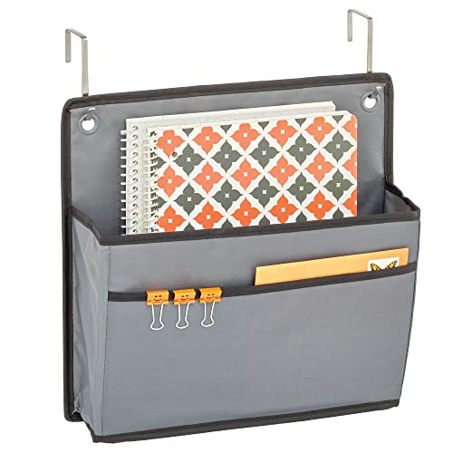 MDesign Portaoggetti da appendere alla porta - Pratico organizer da parete per ufficio - Portaoggetti in stoffa e metallo con due tasche - grigio scuro/nero