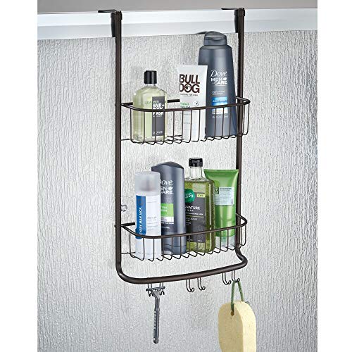 MDesign Portaoggetti per doccia da appendere con parti di montaggio incluse - Pratica mensola doccia in metallo facile da montare per riporre i vostri accessori per doccia - bronzo