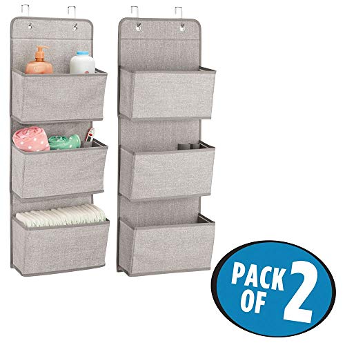 MDesign set da 2 portaoggetti in stoffa da appendere - organizer con 3 tasche per pannolini, peluches e asciugamani - portaoggetti da appendere con fantasia in iuta - colore: beige