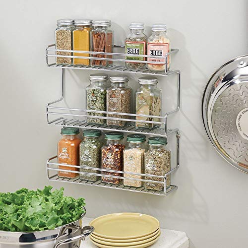 MDesign portaspezie da cucina da montare alla parete o ai mobili della cucina - comodo supporto per le spezie con 3 ripiani - mensola portaspezie in metallo - colore: cromato