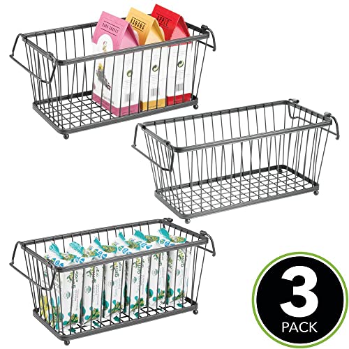 MDesign Pratici cestini impilabili da cucina - Cesti in filo metallico sovrapponibili e con maniglie - Cesti contenitori per cucina, dispensa, camera da letto, ecc. - Set da 3 - grigio scuro