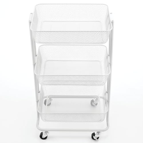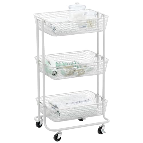 MDesign Pratico carrello con ruote ideale per tutti gli ambienti - Scaffale cucina con rotelle a 3 scomparti - Sostituisce gli scaffali per garage, lavanderia o cucina - bianco