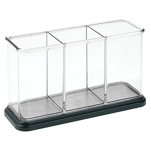 MDesign Pratico organizer cosmetici - Contenitore per prodotti cosmetici come smalto e cipria - Porta trucchi con comodi 3 scomparti - trasparente/nero