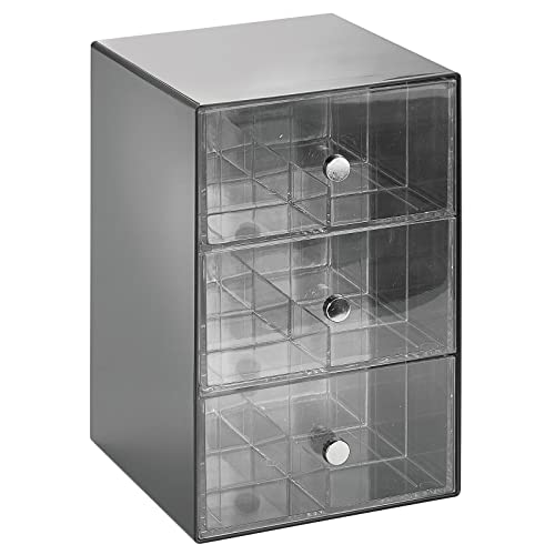 MDesign Pratico porta bustine da te a 3 cassetti - Mobiletto cucina con cassetti, per spezie, tè in bustina, cialde caffè, ecc. - Elegante portaspezie in plastica - grigio scuro e trasparente
