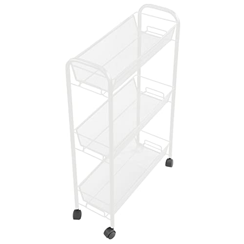 MDesign Pratico scaffale in Metallo a 3 Scomparti - Carrello con Ruote per Lavanderia e Cucina - Sostituisce Perfettamente Gli scaffali per Garage o Lavanderia - Bianco