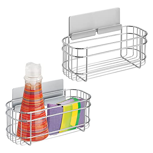 MDesign scaffale a muro AFFIXX porta sacchetti plastica - porta spugne autoadesivo per spugne, detersivi, e altri oggetti da cucina - Colore: metallo - Set da 2