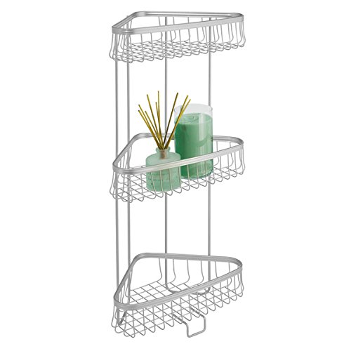 MDesign Scaffale ad Angolo per Doccia - pratico Portaoggetti Doccia a tre mensole per sistemare Flaconi, Spugne e Rasoi - perfetto per Doccia o Vasca da Bagno - Colore: argento metallizzato