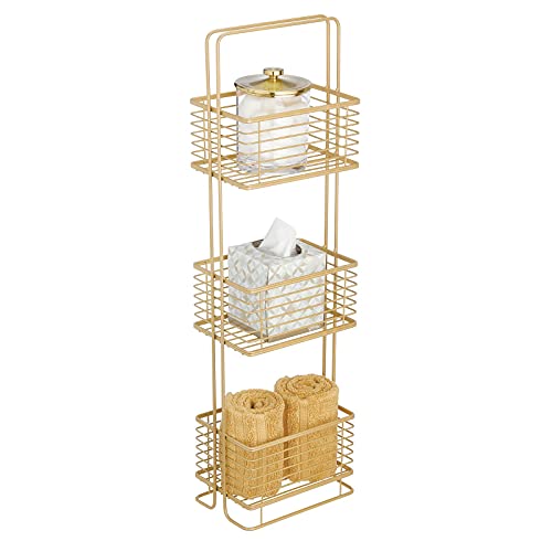 MDesign Scaffale bagno da terra con 3 cestini - Piantana bagno verticale per asciugamani, cosmetici e altro - Portaoggetti bagno in stile vintage ideale anche in cucina e ufficio - ottone