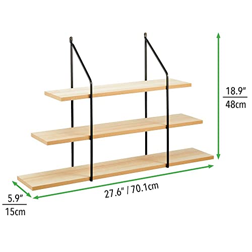 MDesign Scaffale Legno a 3 Ripiani - Mensole Bagno e Cucina in Metallo e Legno MDF - Mobiletto da Appendere in Legno per conservare Cosmetici, Asciugamani, spezie ECC. - Nero/Naturale