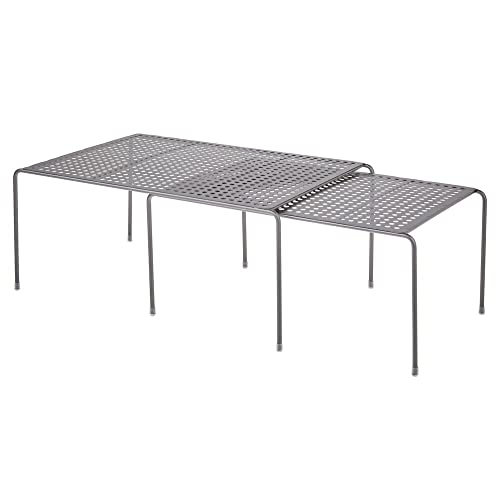 MDesign Set da 4 Scaffali Cucina per la credenza - Pratico Porta Piatti in Metallo con Superficie d'appoggio - Accessorio Porta stoviglie Antiscivolo Estraibile - Grigio Scuro