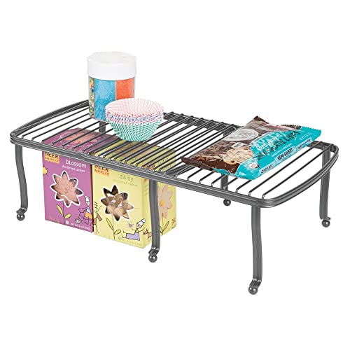 MDesign Set da 2 Scaffali cucina regolabili per la credenza - Pratico porta piatti e porta stoviglie in metallo con superficie d'appoggio - Accessorio antiscivolo estraibile - grigio scuro
