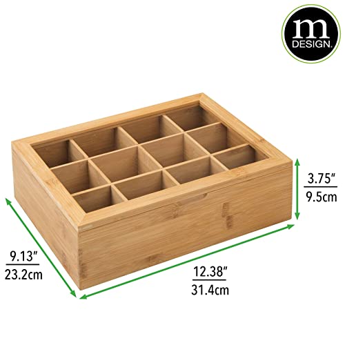 MDesign Scatola Porta The in Legno - Porta tisane con 12 Scomparti per conservare Le bustine - Pratico Organizer Cucina con Coperchio Trasparente - bambù