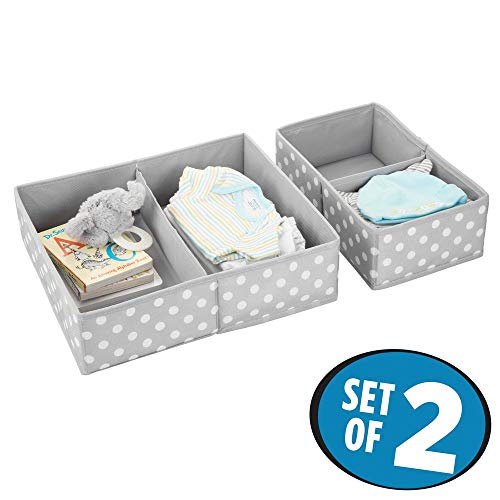 MDesign Set da 2 Scatole per armadi in polipropilene - Organizer multiuso in due dimensioni - Ceste portaoggetti in tessuto con 2 scomparti per vestiti, coperte e accessori - grigio chiaro/bianco