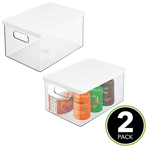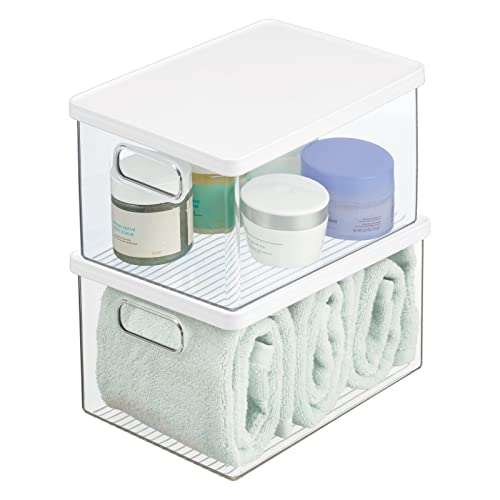 MDesign Set da 2 scatole con coperchio rimovibile - Organizer cosmetici trasparente e impilabile - Contenitore plastica ideale per trucco, saponi, sali da bagno, spugne ecc.- trasparente/bianco