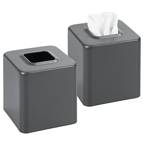 MDesign Set da 2 Scatole porta fazzoletti cubiche in metallo - Pratici portatovaglioli e salviette cosmetiche - elegante e moderno Portafazzoletti di design - Grigio opaco