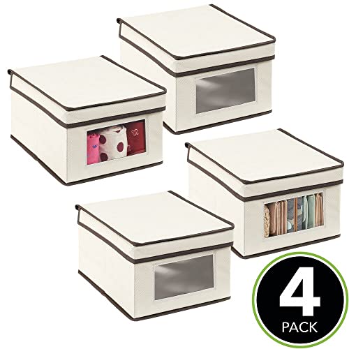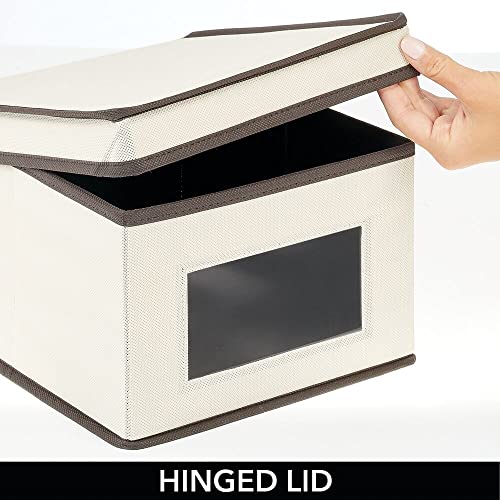 MDesign Set da 4 scatole portabiancheria - Scatole per armadi con coperchio e finestra trasparente - Scatola contenitore rettangolare in tessuto sintetico per vestiti e accessori - crema/marrone