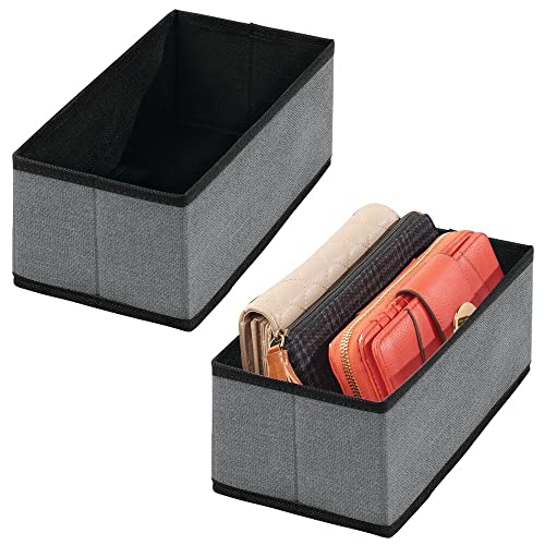 MDesign Set da 2 Scatole portaoggetti - Organizer per cassetti per Biancheria, Accessori e Gioielli - Box Pieghevoli in Fibra Sintetica Traspirante - Grigio Scuro