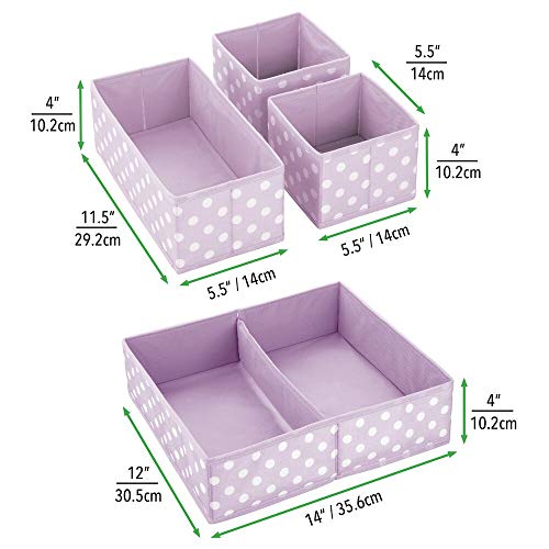 MDesign Set da 4 Scatole in Tessuto di Tre Misure Diverse - Portaoggetti per la casa con 5 Scomparti totali - Portabiancheria Ideale per la Stanza dei Neonati/Bambini, Asilo Nido ECC. - Lilla/Bianco