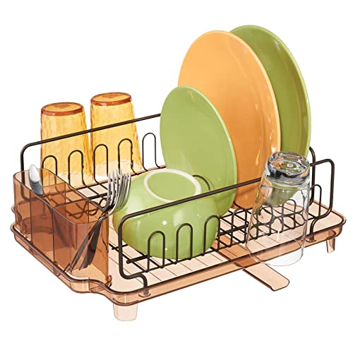 MDesign Set da 2 Scolapiatti da appoggio - Scolapiatti in plastica e metallo - Con pratico sgocciolatoio e scarico girevole per l'acqua - Ampio e capiente - bronzo/sabbia