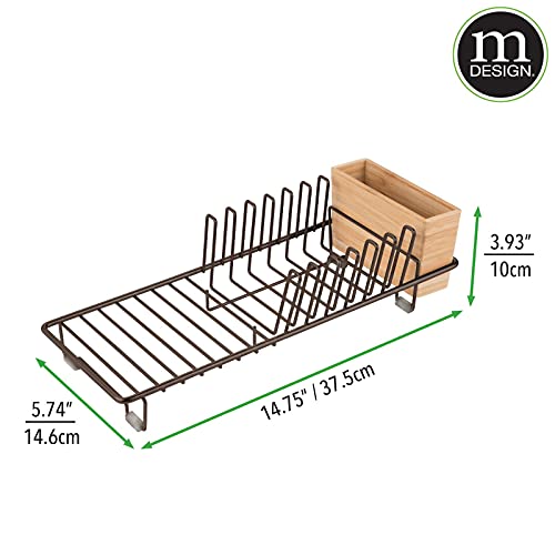 MDesign Scolapiatti in metallo - Scola piatti per lavello delle cucina con 2 sezioni - Sgocciolatoio in metallo con settore per le posate in bambù - bronzo/naturale