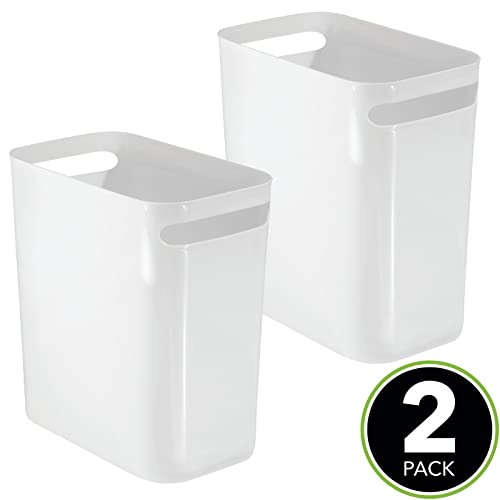 MDesign Secchio immondizia con manici - Moderni cestini rettangolari in plastica - Adatti come portarifiuti in cucina, bagno, ufficio e cameretta - Set da 2 - bianco