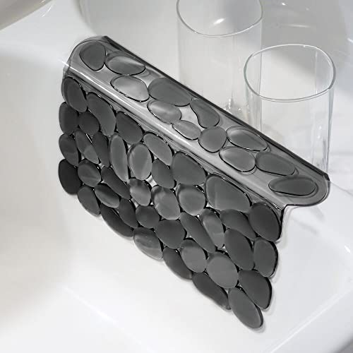 MDesign Set da 3 Tappetini per lavello cucina in plastica - Grande tappetino lavandino protettivo con design a ciottoli - Accessori cucina per lavello a doppia vasca - nero