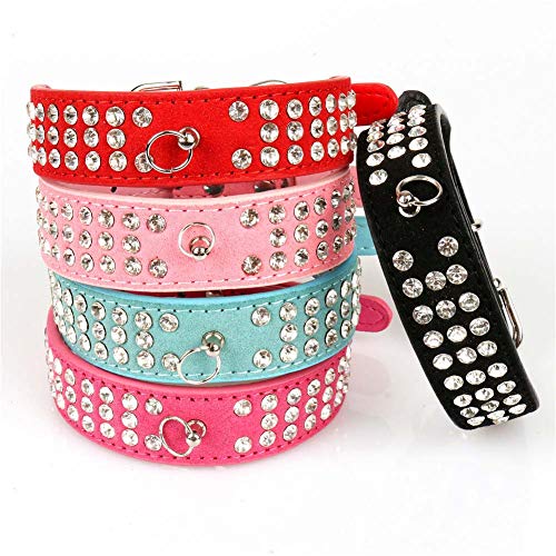 Mdurian Collare per Cani in Cristallo Bling con Pelle Scamosciata Morbida con Strass Luccicanti con Colletto Tempestato di Diamanti (XS, Viola)
