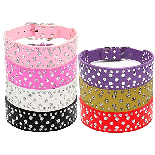 Mdurian Collare per Cani in Pelle Sintetica con Strass Bling Collari con Borchie di Diamanti in Cristallo per Cani di Taglia Media e Grande (Rosa, M)
