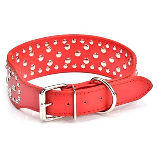 Mdurian Collare per Cani in Pelle Sintetica con Strass Bling Collari con Borchie di Diamanti in Cristallo per Cani di Taglia Media e Grande (Rosso, M)