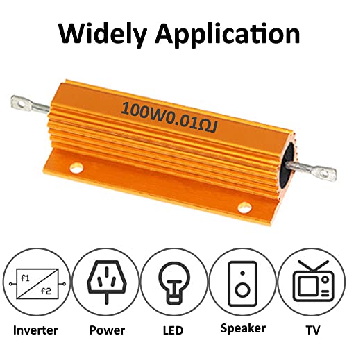 Mdurian 2 X Ferita Resistore 100W 0.01 Ohm 5% Resistenza di Potere Case Alluminio Carico Piatto d'oro A Filo Avvolto Montato Sul Telaio Adattatore per Luce Convertitore