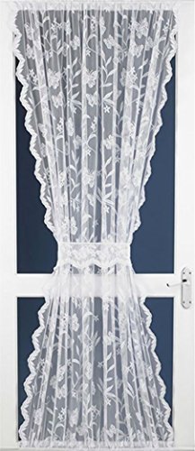 Una tenda a rete per porte in rete con motivo a farfalla bordata con un disegno a foglia. 137,2 cm di larghezza x 182,9 cm. Include un laccetto.