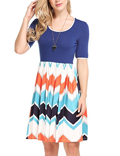 Meaneor - Abito da skater, da donna, linea ad A, con scollo a V, elasticizzato, a righe