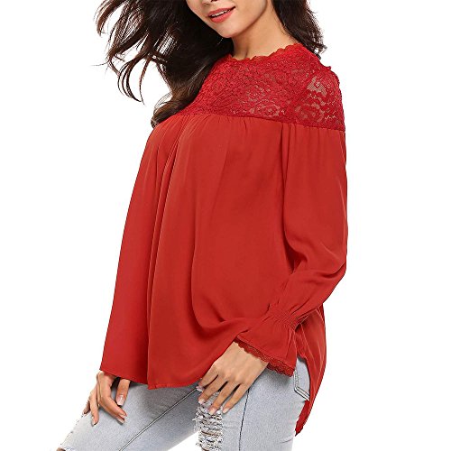 Meaneor, Camicetta Casual da Donna, Scollo Rotondo, Maniche Svasate, Pizzo Floreale e Chiffon