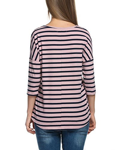 Meaneor Camicia a righe Maniche 3/4 camicia camicetta allentata di base della maglietta della banda signore con O-Collo