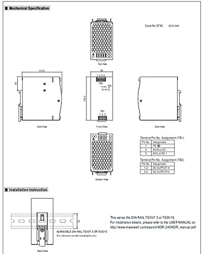 Meanwell AC/DC alimentatore switching per montaggio su guida DIN 240 W 48 V ndr 240 - 48