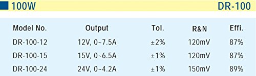 MeanWell DR-100-15 Alimentatore Trasformatore 15V 6.5A 100W Per Barra Guida DIN Rail Power Supply Universale