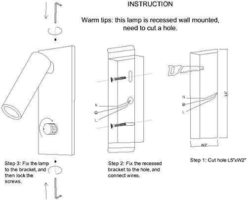 Finitura nichel spazzolato, lampada da lettura a LED per lettura sul comodino interna da incasso / incasso, lampada da lettura per testiera personale.