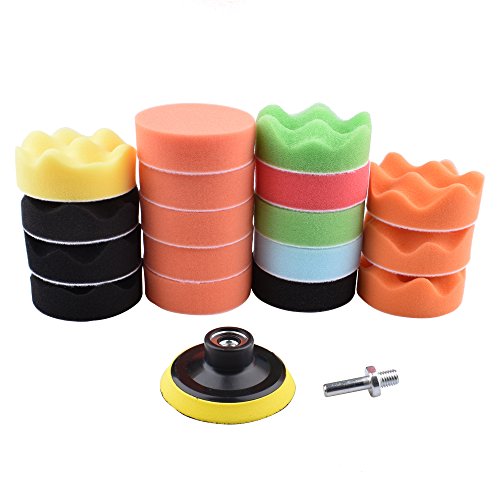 Meaor - Cuscinetti per lucidatura, in spugna, 7,6 cm, set con 19 pezzi, con adattatore per trapano, M10 per auto lucidatrice a cera